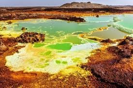Danakil Düzənliyi, Efiopiya – Dünyanın ən isti və qurumuş ərazilərindən biri olan Danakil, vulkanik fəaliyyət və geotermal proseslərin nəticəsində yaranmış sarı-yaşıl mineral yataqları ilə diqqət çəkir. Buradakı temperatur və yüksək duz tərkibi ekstremal həyat şəraitini öyrənmək üçün unikal təcrübə təqdim edir.